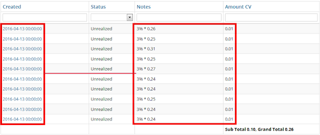 Lihat tarikh sebelah kiri dalam gambarajah dibawah.. gambar tu hanya sebahagian sahaja bonus ETA Matching ni... Sehari USD0.26... 400 hari??? Bonus ni akan meningkat hari demi hari sebab bonus ni overide dari profit downline... Profit downline pula akan meningkat hari demi hari!!! Sebab tu dalam ZenithGold, ini bonus paling SUPERB!