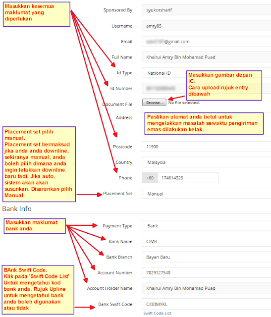 Unutk update profile, klik pada menu 'Update profile'. Masukkan Security Password anda.. dan anda akan dibawa ke halaman profile anda seperti dibawah